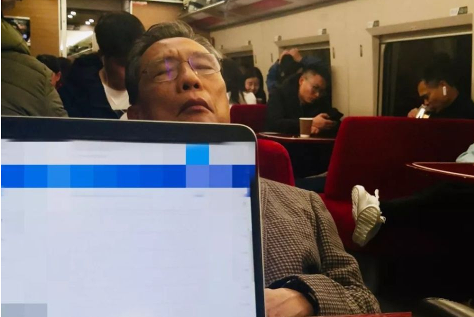 钟南山院士从深圳抢救完相关病例回到广州,当天下午还在广东省卫健委开会时,便接到通知要他马上赶往武汉。当天的航班已经买不到机票了,助手匆匆帮他回家收拾东西,直接到广东省卫健委会场跟他会合后便匆匆赶往广州南高铁站,挤上了傍晚5点多钟开往武汉的高铁。春运期间高铁票紧张,临时上车的他被安顿在餐车一角。一坐定,他便马上拿出文件来研究。晚上,快11点到达住处,他又简单听取了武汉方面的情况,满满当当的一天工作和行程才算结束了。