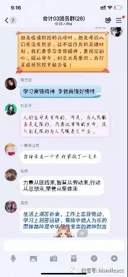 会后,各团支部成员在班级群中分享了自己的心得体会,同学们表明,在疫情防控阶段,自己将以实际行动践行雷锋精神,展现时代新人的责任担当