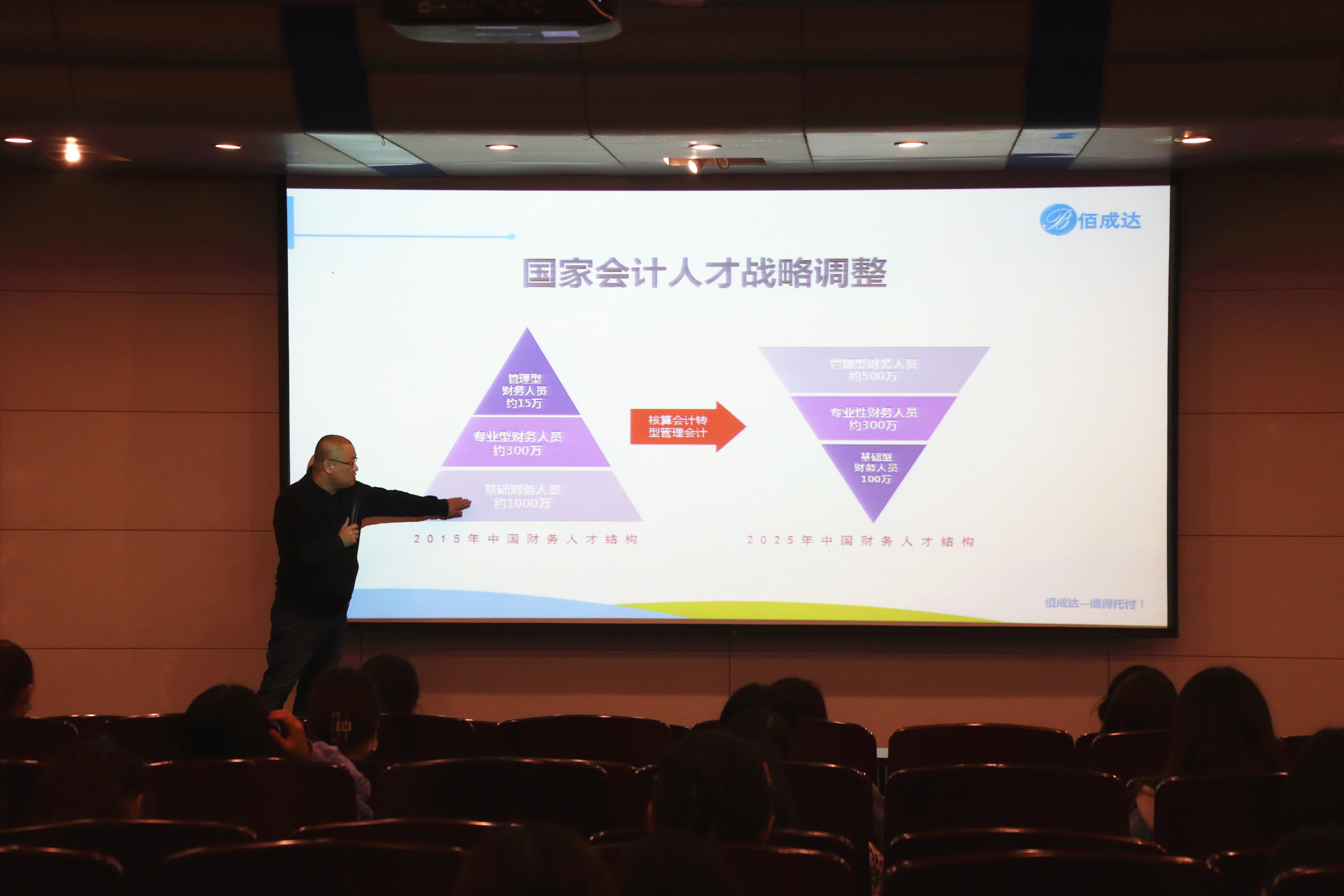 报告会中,石为民先生对会计职业在中国的未来方向,国家会计人才战略调整方向及如何认识会计工作的基本内容,如何提高会计能力等几个方面进行详细的分析。同时结合自身就业、创业过程中经验和教训,生动地讲解了如何准确定位就业方向,制定职业规划,寻找适合的就业、创业道路,并分享了自己的从业小技巧,用风趣的语言分析就业与选择的挑战,人际关系的挑战,分析如何适应未来的工作环境;同时对当前就业形势,就业政策,就业技能方面等问题进行了客观解答;帮助学生们树立正确的择业观和就业观,科学、合理、灵活的规划自己的职业生涯,指出在择业时应清楚自身的专业水平,寻找适合所学专业、合适自己发展的道路。