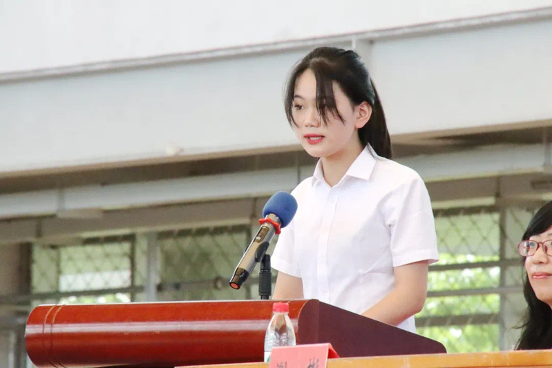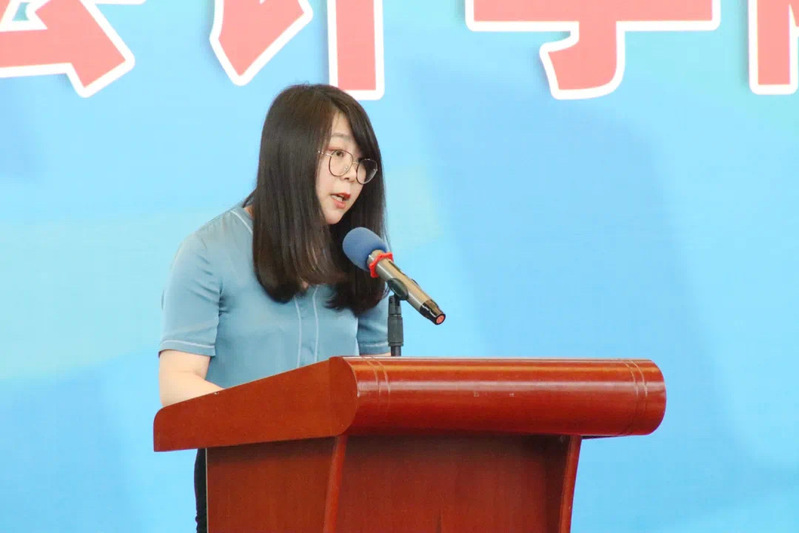 19级会计1班于闫冰带领全体实习生进行宣誓。