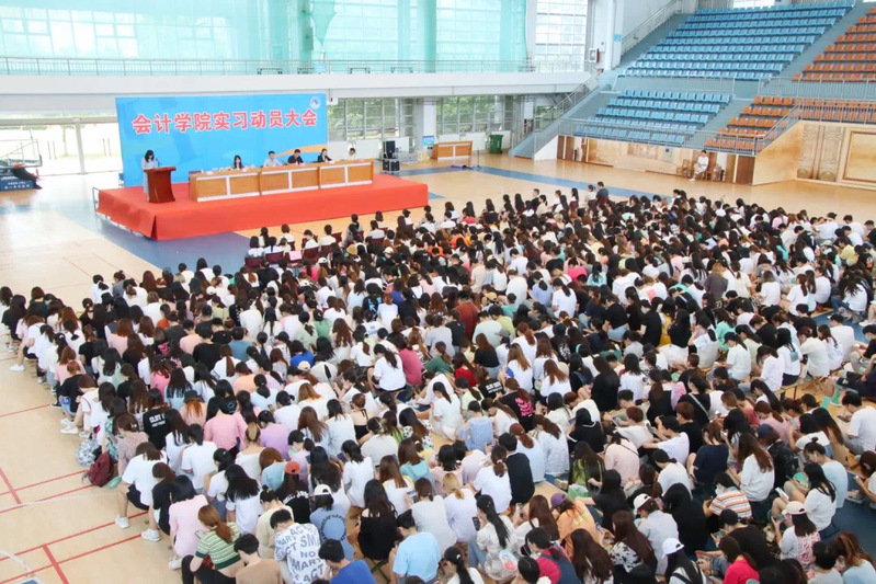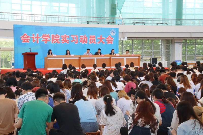 刘院长讲话,指出此次动员大会旨在让同学们对毕业实习有正确的认识,动员教育全体实习生统一思想,提高认识,明确实习任务,深入扎实开展毕业实习,全面加强理论与实践联系,检验教学成果,锤炼财会工作本领,提升实际工作能力,为毕业后寻找更好的工作奠定基础。