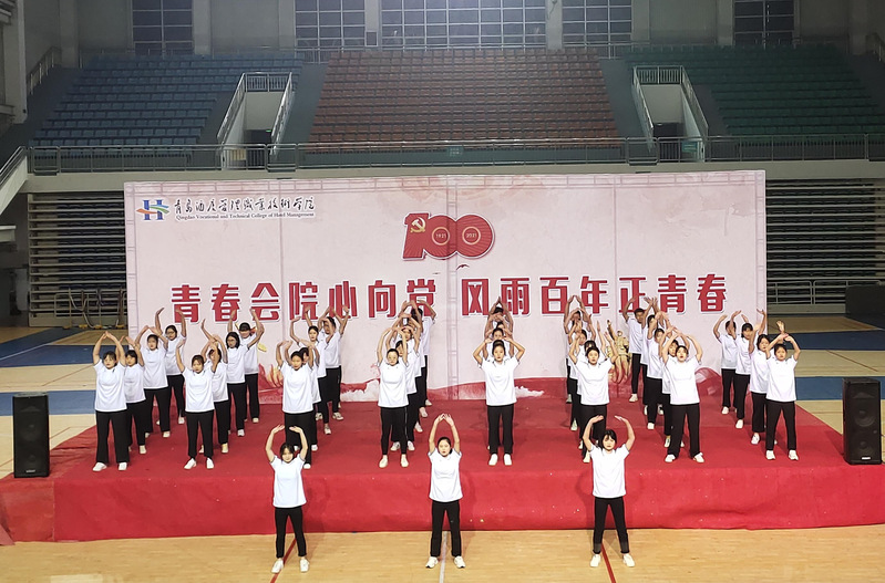 举办“青春会院心向党,风雨百年正青春”团体操比赛。本次比赛以建党百年版《少年》为参赛曲目,嘹亮的歌声、整齐的动作,表达着会院学子对祖国的热爱,对党百年华诞的祝福。