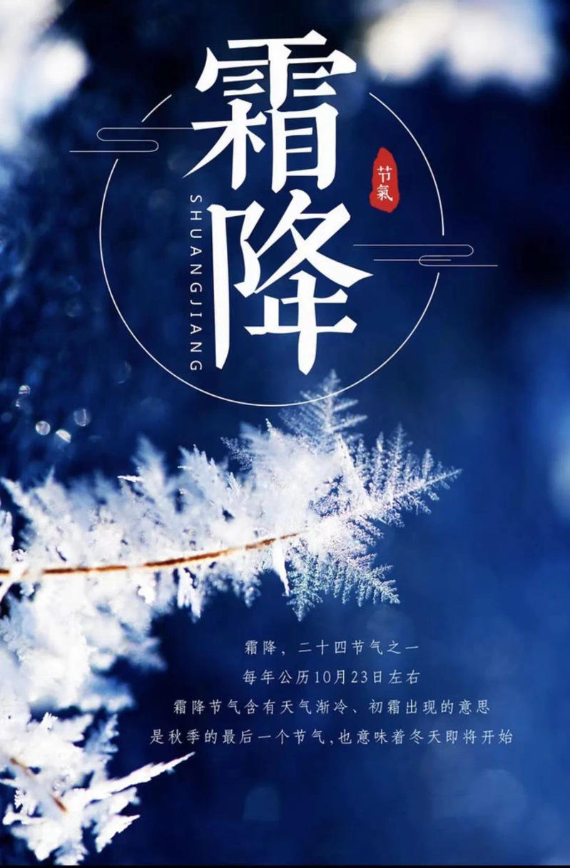 霜降为农历二十四节气之一,进入此节气天气渐冷,开始有霜。霜降一般是在每年公历的10月23日,这时中国黄河流域一带出现初霜,大部分地区多忙于播种三麦等作物。