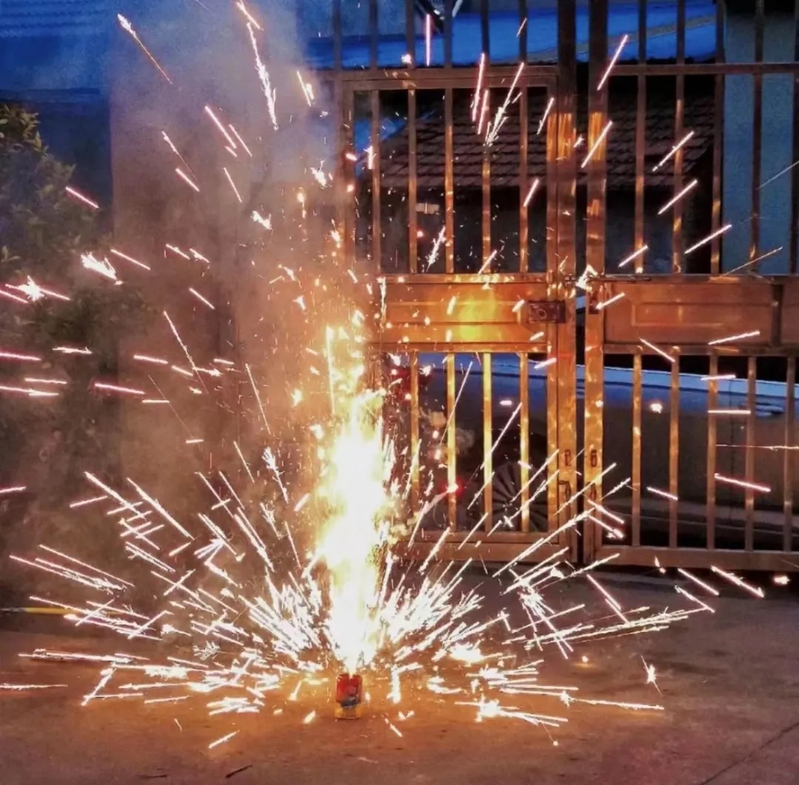 在漫天的闪闪鞭炮中