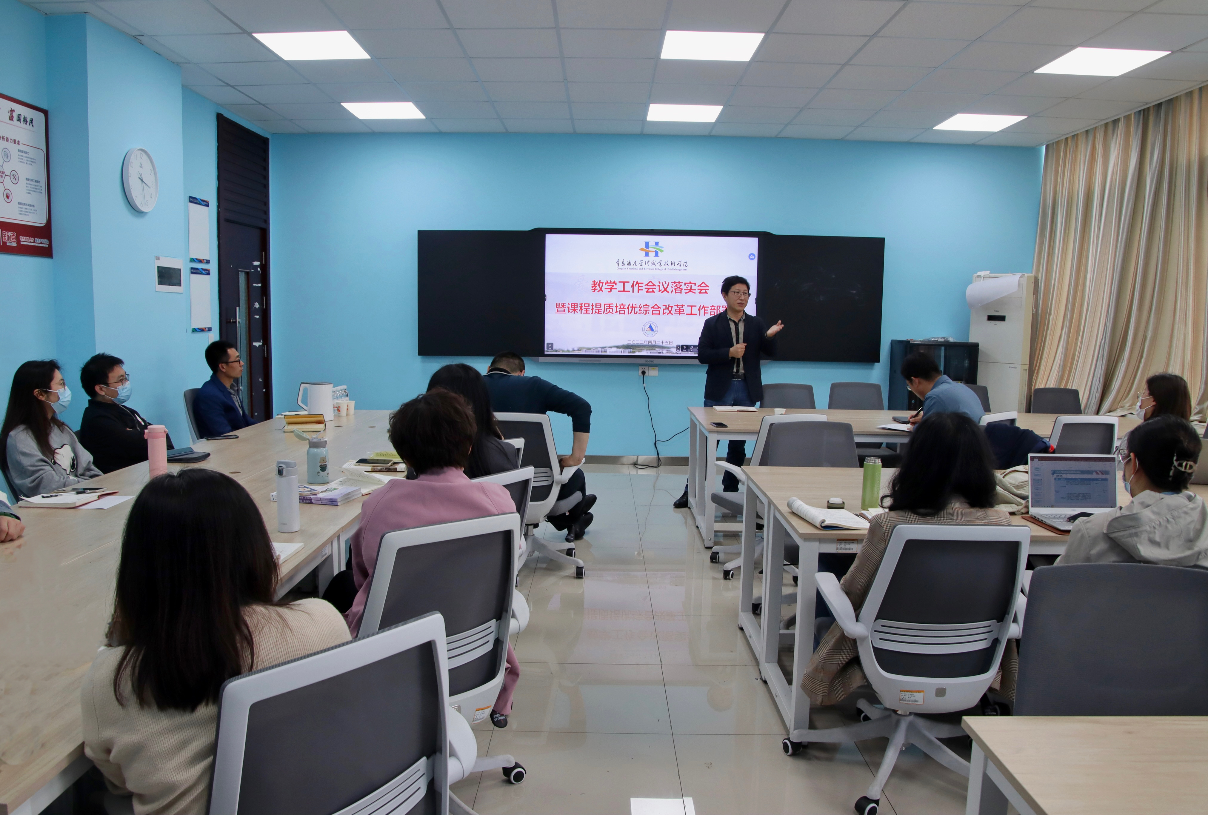 会上,教务处处长于进亮从课程标准体系、教学模式、课程资源、课程评价等四个维度对学校课程提质培优改革实施方案进行了深度解读。马克思主义学院副院长李瑶做了题为“课程思政在‘提质培优’教学改革的应用与思考”专题报告,并和与会老师就财经类专业课程思政实施路径和方法进行了研讨。Betway体育西汉姆联副院长刘进涛主持会议并结合学校教学工作会议精神安排部署Betway体育西汉姆联2022年度教学重点工作。