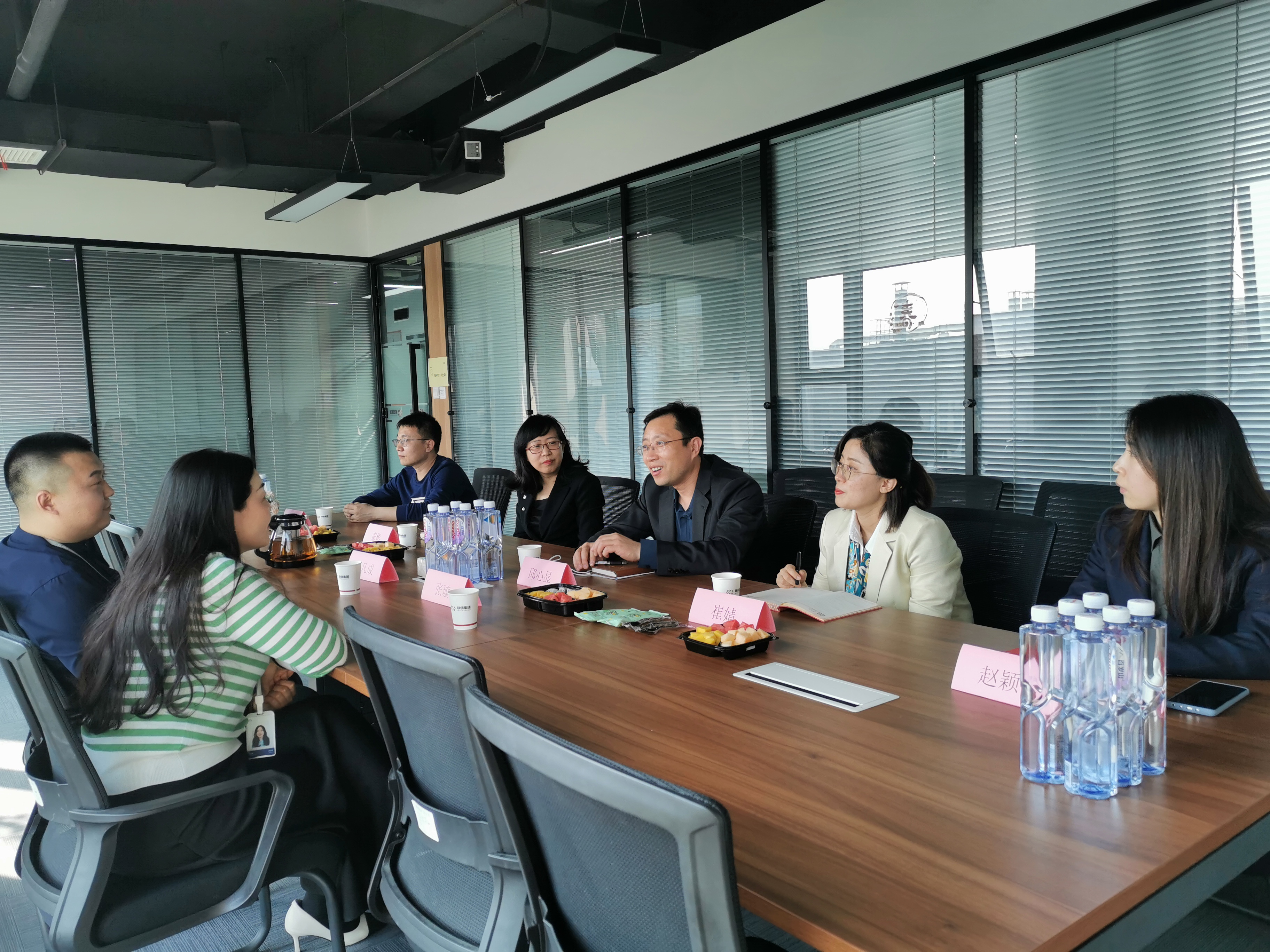 邱心显一行首先参观了联信集团前排业务职场,实地考察就业(实习)岗位、工作环境和企业文化,详细了解联信集团的发展情况及核心业务。随后与企业代表座谈交流,邱心显详细介绍了学校办学历史、办学特色、办学实力等情况,对企业在人才培养、校企合作等方面给予的支持表示感谢,并认真听取了联信集团对学校财经金融人才培养工作的意见与建议。校企双方共同表示将进一步完善校企合作育人平台,创新人才培养模式,推动校企双方开展更全面、更深入的合作,为服务区域经济发展培养更多高素质复合型技术技能人才。