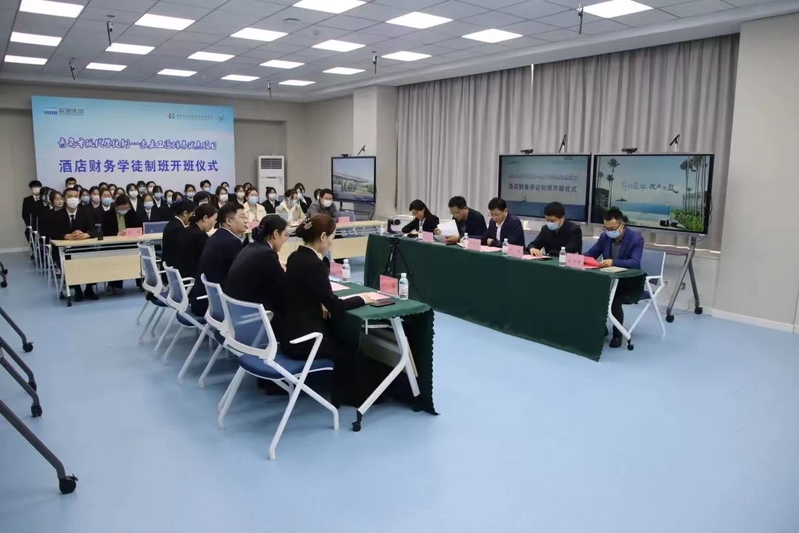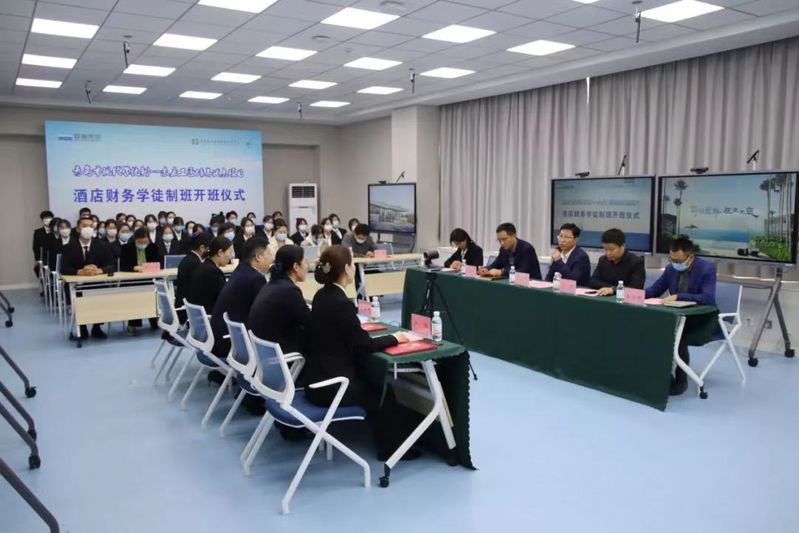 张宗国表示,此次开班仪式是学院与蓝海集团深度合作的崭新开始,希望校企双方紧密合作,将酒店财务现代学徒制班办出质量,干出特色,做出成效,打造成为有示范引领作用的校企合作品牌和现代学徒制典范。鲁晓静对即将加入蓝海的学徒制班的同学们表示热烈的欢迎,希望同学们珍惜学习机会,锤炼专业本领,未来在蓝海快速成长、成人、成才,不辜负母校的殷切期望。