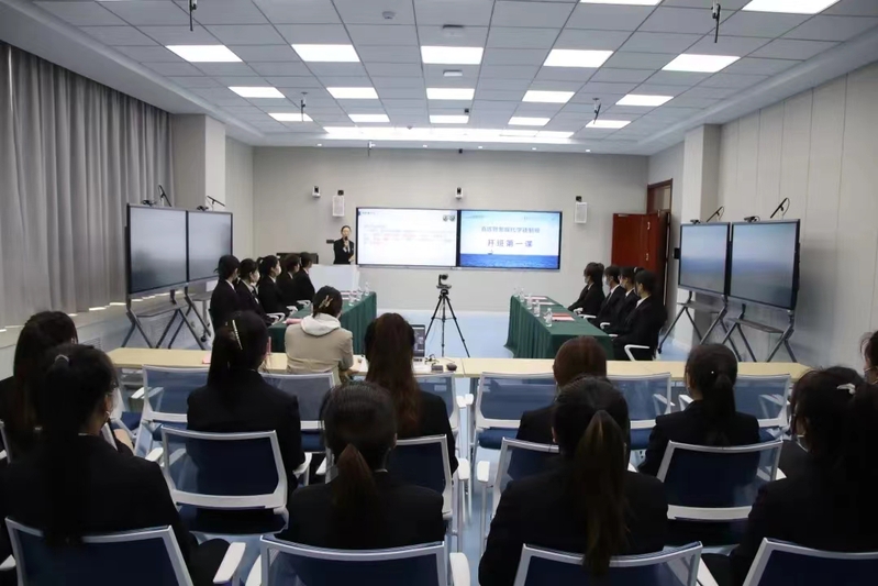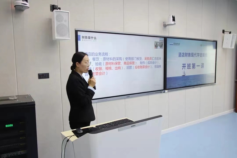 仪式结束后,青岛蓝海大饭店(崂山)财务总监郭红彩为学徒讲授开班第一课。