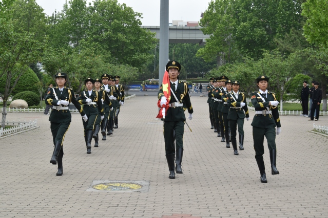 在全体师生的庄严注视下,英姿飒爽的国旗护卫队迈着铿锵有力的步伐护送国旗入场。伴随着昂扬澎湃的《义勇军进行曲》,五星红旗冉冉升起,全体师生齐唱国歌,向国旗行注目礼。在这庄严的时刻,师生们心中激荡着爱国情怀,也更加坚定了守护校园安全的信念。