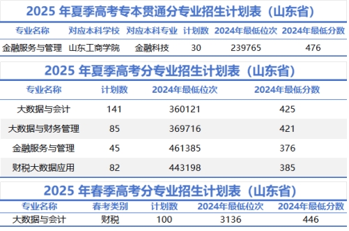 五、各专业招生计划
