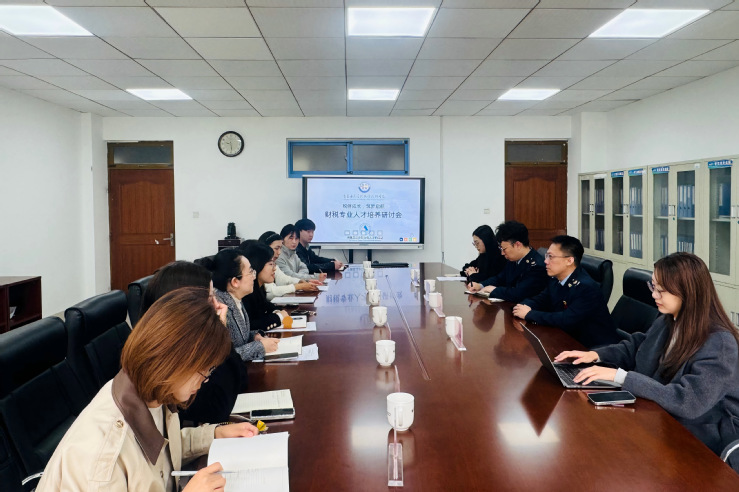 学院特邀青岛市李沧区税务局九水税务所所长李晓东、税源管理一科副科长郑毅,共同召开政校协同育人专题研讨会。双方围绕智慧税务背景下行业发展需求、财税类专业人才培养、专业数字化转型、课程教材建设等问题进行深入探讨,为培养适配区域经济社会发展的财税高技能人才筑牢根基。